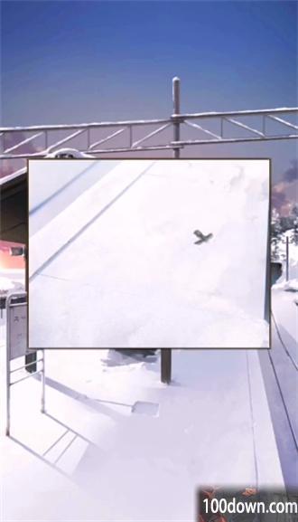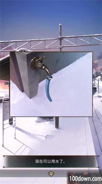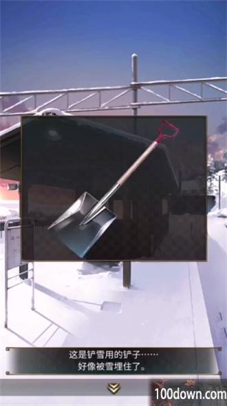 5、用【铁锹】打开外面场景左侧的位置获得【把手】,同时将右侧铁轨上的积雪清除获得【金属零件】;