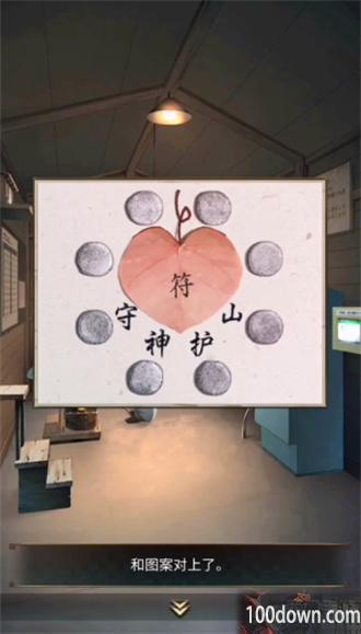 7、回到最初的场景将【符】放在右侧的神棚上面,之后可以获得文字图案线索;