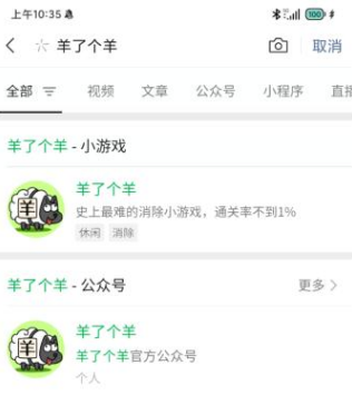 玩家点击打开自己的微信,然后在右上角的小程序搜索框中,输入“羊了个羊”,然后就会出来相关的小程序,玩家点击进入即可体验,玩过的小程序会自动保存在微信上方位置,玩家下拉就可以看到了,这样会比较方便下一次体验。