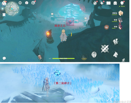 4、收集了4块深赤之石的力量,融化冰块,【开启】出现一块碎片;