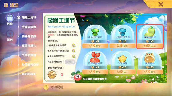 ②进入活动中之后,在左侧找到并点击“感恩土地节”活动;