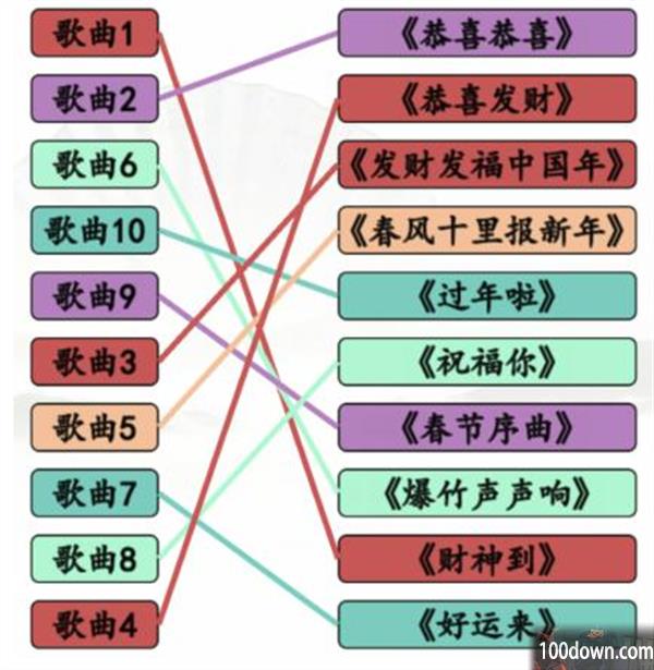 本关玩家根据歌曲片段正确连接春节神曲即可。难度不大,不会的玩家参考攻略吧。