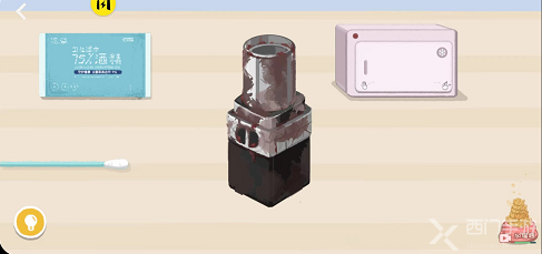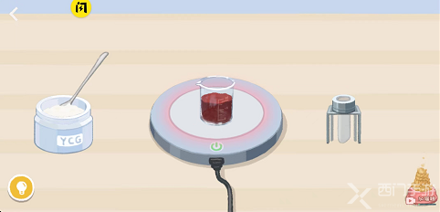 1、先使用上面的再使用下面的,将口红放到右侧的烧杯中;