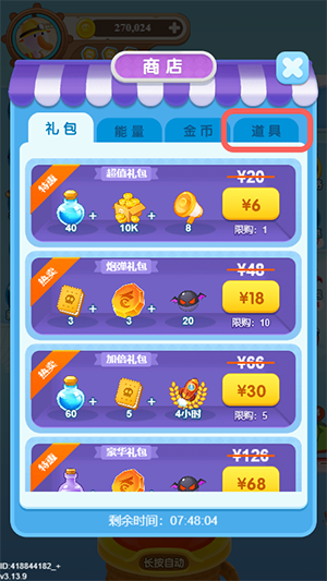3、在商店的上方选择切换到【道具】;