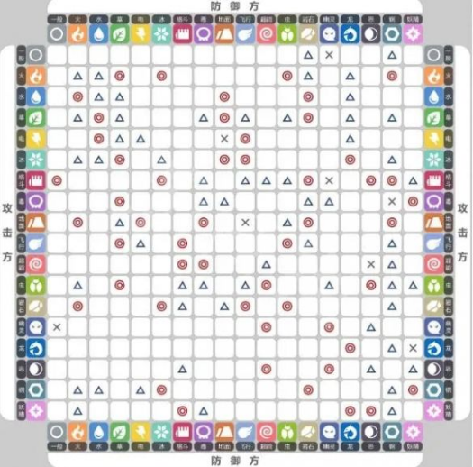 注意:在原始属性、太晶属性、招式属性都相同 招式威力提升○=2倍 △=0.5倍 x=无效。