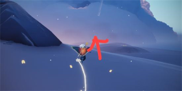 3、一直朝着这个方向飞行玩家们能看到橙色的光,橙色光芒的地方就是这个先祖的位置;