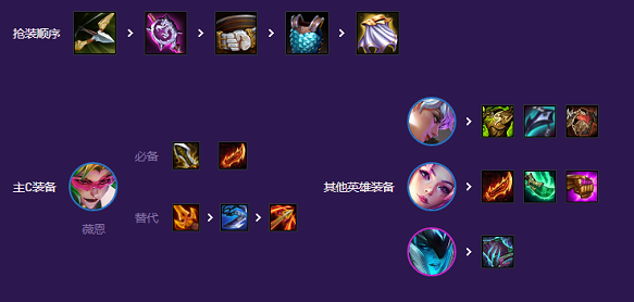 拿不到就拿瑞文的锁子甲或腰带做防装,版本狂徒很好用,甚至可以优先合成打连胜,只要前排够顶,后排不缺伤害的,物理给VN,法系给卡莎就行。过渡的话,用前排的双护卫/斗士搭后排的决斗/情报/源计划都可以。