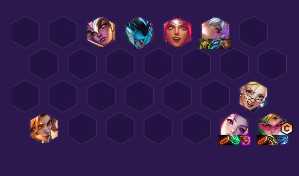 1、阵容成员:薇恩、锐雯、卡莎、瑟庄妮、芮尔、尼菈、迦娜、厄运小姐