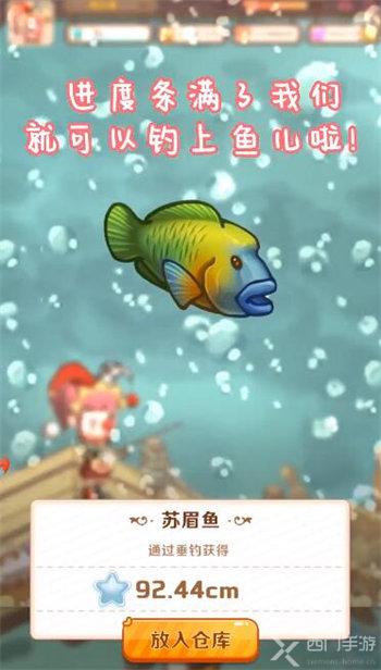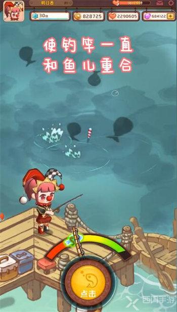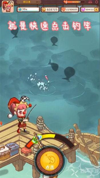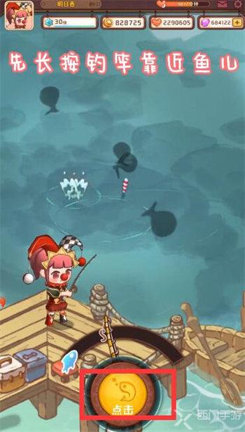 4、等鱼儿上钩后快速点击下面的钓竿;