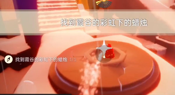 4、找到霞谷的彩虹下的蜡烛,第四个任务在霞谷的溜冰场,然后去飞行赛道的霞光城就能够看到了。