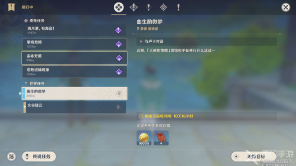 原神曲生酌微梦第一天任务攻略在原神游戏中,最近在开启了曲生酌微梦的调制饮品活动,这个活动中会分为很多个不同的任务,其中第一天的任务怎么完成呢?接下来小编为大家带来了详细介绍,希望可以帮助到大家。时间:2023-11-03 -