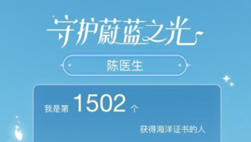 4.完成海洋公益任务之后,还可以生成自己角色的证书,这是一个很有意义的活动,呼吁大家保护大海,予光于海,祝福蔚蓝。