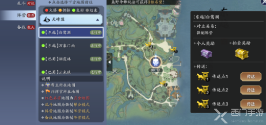 枭野争锋/决战选择地图界面也进行了更新,少侠可以在此查看各个领地/首领的位置和对应的复活点/传送带。进入位面的时候也可以自由选择需要传送的初始传送点。同时,各个首领的激活时间也可以在此界面看到哦!更方便少侠根据帮会实际情况选择合适的地图,击败对应首领。