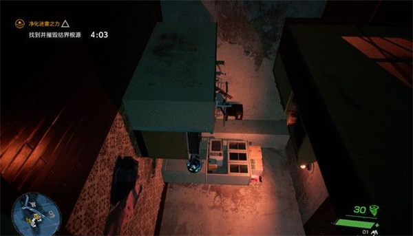 2、这个时候发现整个公园都已经被迷雾困住了,想要出去必须破坏所有的迷雾节点,其中第一个节点就在楼梯间;