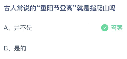 古人常说的“重阳节登高”就是指爬山吗?这是今日的蚂蚁庄园小课堂的问题,很多玩家都比较关注这个话题,接下来就让小编为大家详细介绍一下,希望可以帮助到大家。