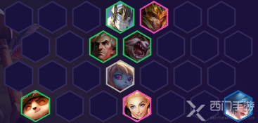 这套阵容提莫主C,五德玛西亚顶在前排为提莫制造良好的输出环境,副C琴女依靠德玛西亚羁绊可以获得光明装备,阵容成型较为容易。