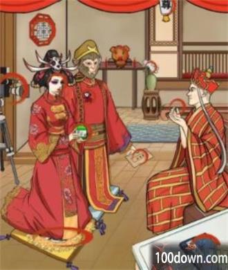 大圣娶亲不和谐之处是:白灯笼、白色囍字、摄像机、ddw、辞职信、孙子兵法、照妖镜、白菊花、猪八戒、胸花、菊花垫、白骨精(拖动照妖镜)