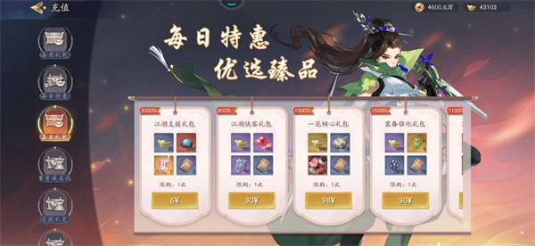 4、在每日任务的任务中玩家们每一天都可以获得一张珍宝卷,另外在每日特惠中也可以获得珍宝卷。