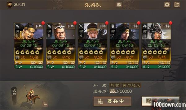 张梁可以施加妖术降低对方的移动力,并增加敌军额外伤害,张宝在队伍中同样可以召唤妖术,招魂盾兵并存在6回合帮其作战,马腾具有很好的群体兵刃伤害,是队伍中的输出武将;