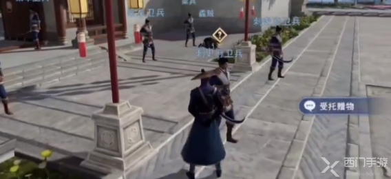 4、然后会被传送到南门位置,接着跟着指引找商户、赵父进行对话;