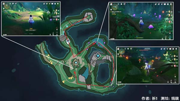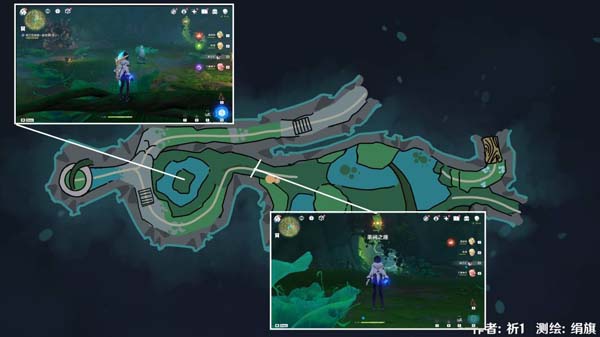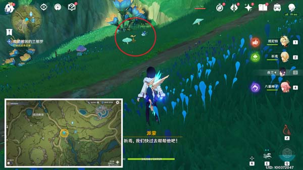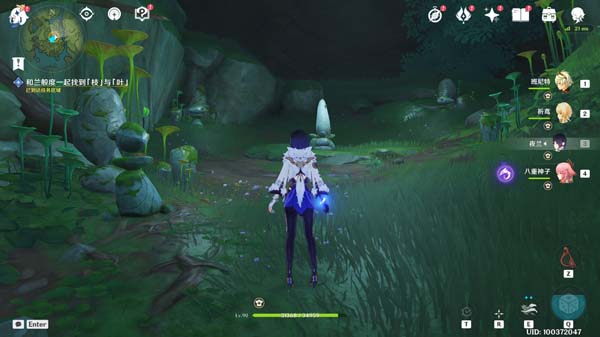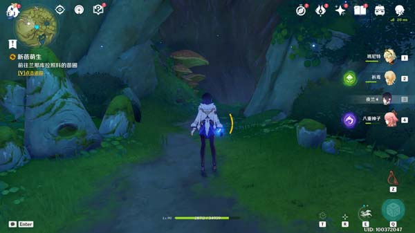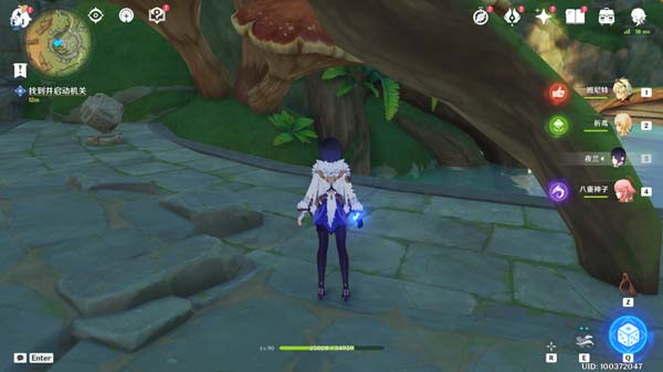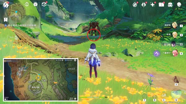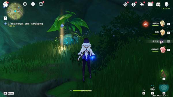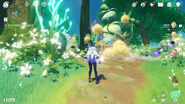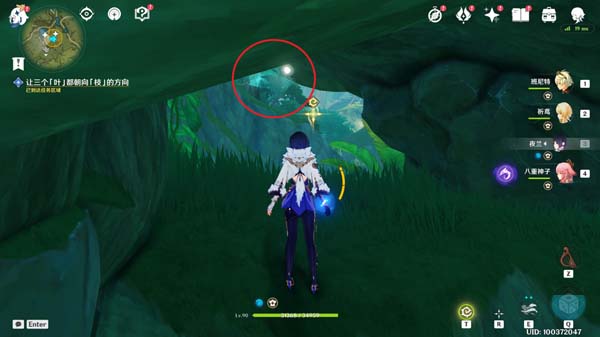 4、然后击败两处的蕈兽,蕈兽都在树上,可以用草元素攻击旁边的花蕊,召唤四叶印然后快速移动;