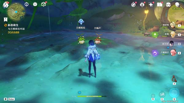 1、首先玩家传送到水天丛林的神像处,向西南方看就能看见有一个兰那罗被蕈兽包围;