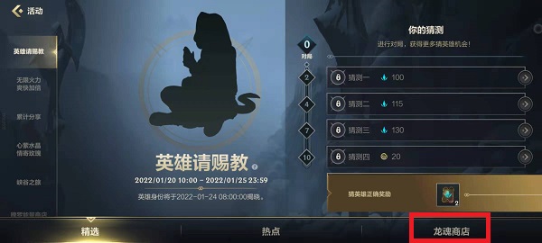 2、在活动界面再次点击右下角的【龙魂商店】就可以进入到龙魂商店;