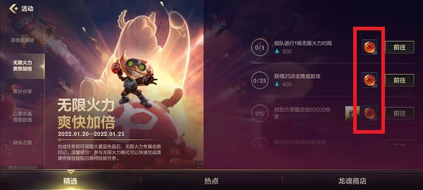 4、龙魂商店中的龙魂水晶可以通过无线火力模式中的任务活动去领取,完成无限火力活动任务,就可以获得,每天都可以领取两百的龙魂水晶;