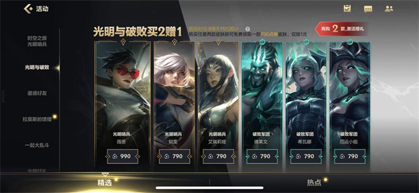 在英雄联盟手游上线了破败军团和光明哨兵的皮肤,玩家们在游戏里面可以参与光明与破败活动进行购买,那么接下来小编就来为大家介绍一下游戏内的活动详情,赶紧来看看吧。