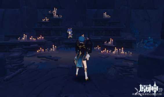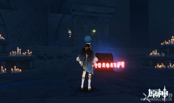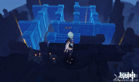 2、将墙体旋转至如下图即可:(黄色光柱位置为水元素方碑,将4个方碑都激活后,中央的栅栏就会打开)