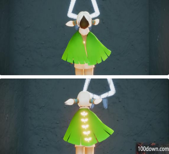 斗篷的灵感来源与自然日相关,整体颜色为青青草原的绿色,且斗篷背后的光翼图标是树苗的外观,所以光崽们也叫这个斗篷为「绿芽斗篷」。