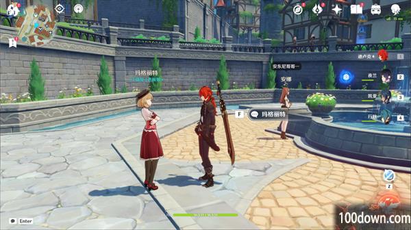 ▲2.向喷泉**上的路人打听情报:与猫尾酒馆老板娘[玛格丽特]对话。