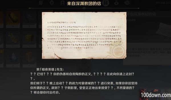 ▲4.到达深渊教团据点的最深处,击败水深渊法师后,审问深渊法师,了解其计划后离开深渊教团据点。剧情对话结束后可以拾取到一个珍贵的宝箱,这是宝箱④。