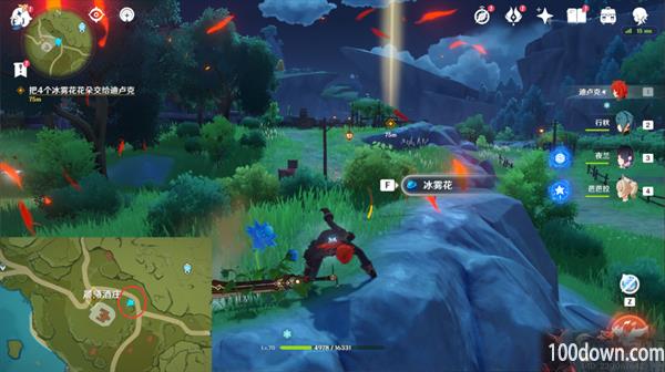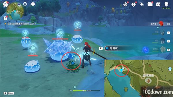▲2.离开酒庄后,在水边采集冰雾花花朵(0/4):这边提供四处冰雾花点位(需要用火属性攻击触碰冰雾花后才能采集)