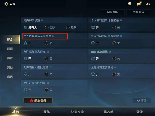 2、接着在【综合】页面玩家们会发现一个【个人资料显示亲密关系】;