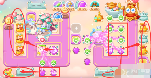 3、右侧可以多放魔法球,不用升满级,中期左侧道具清理完也放魔法球,这个魔法球需要升满级;