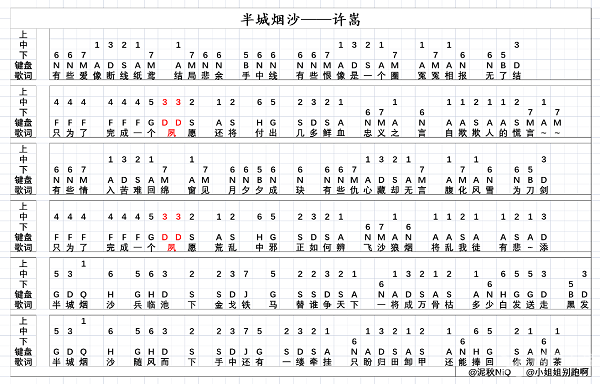 原神半城烟沙琴谱-原神半城烟沙手机版电脑版琴谱分享