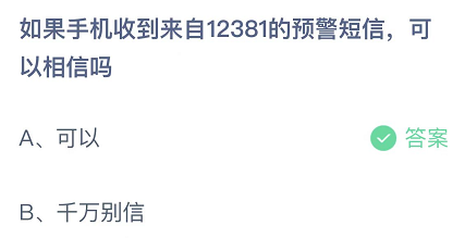 如果手机收到来自12381的预警短信,可以相信吗-蚂蚁庄园12月15日答案