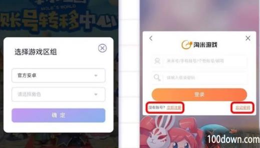 2、然后选择自己的游戏服务器账号确认后,开启淘米账号注册/登录/绑定;