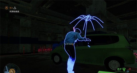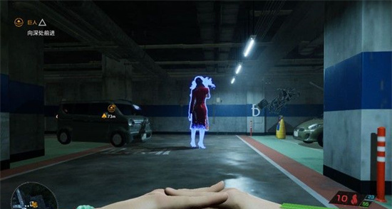 2、进到地下停车场最好潜身追击,敌军分布情况:左侧有一小撮怪兽,中间是精英鬼女,右侧为监视塔。