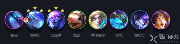 1、阵容组成:赛芬、韦鲁斯、俄洛伊、图奇、奥恩、伊泽瑞尔、塞拉斯、霞