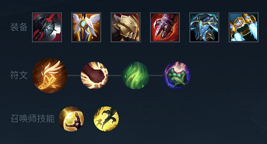 出装顺序合成路线:小木槌/耀光/鞋子(附魔推推棒)/血手小件1200增加血量攻击力/合成3项/合成血手/死亡之舞(如果对面adc输出爆炸换成兰顿)/复活甲-自然之力-看对面ap输出是否多可以和复活甲调整谁先出。