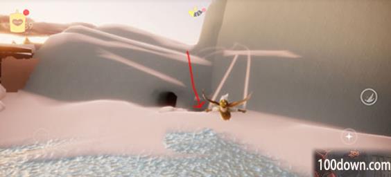 1、玩家先来到霞谷地图,然后一路来到冰湖广场上,往右边看右一个洞穴,如下图: