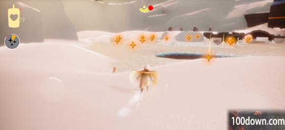 4、此时可以看到在外面有很多橙色的光点,需要玩家进行收集,收集完毕之后,再次回到这个双人门洞穴;