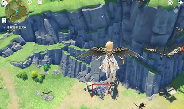 2、接着从七天神像的山崖的下面可以看到矿场,看到矿场以后向左侧飞行去山崖的下方;