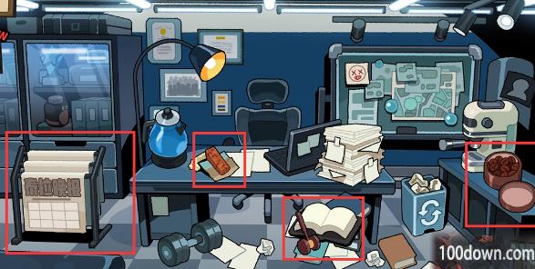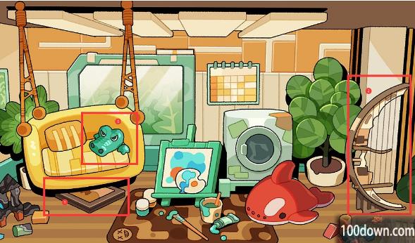 下图中的三个位置,椅子上的鳄鱼是密码箱,之后按照另外两个物件右下角的页码顺序在鳄鱼那里填入数字即可。