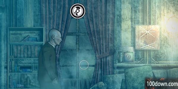 2、然后点击窗户边的机关,进行运动圆形解谜,首先关闭左边所有按钮让圆形全部动起来,在每个圆形到达指定位置时点击左侧对应按钮使其变黄即可(按钮从上往下分别控制从大到小的圆),最后出现线索;