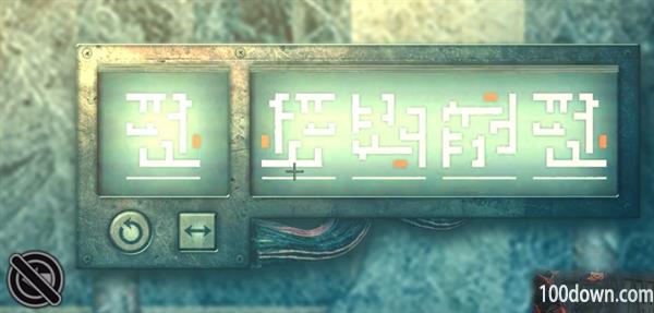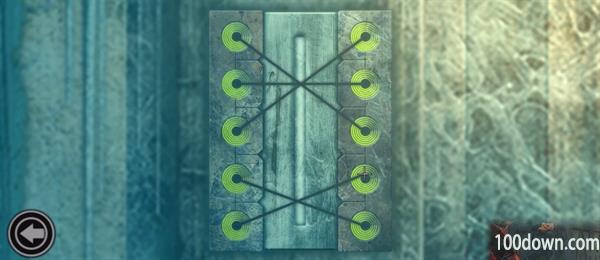 4、来到左侧门边找到机关,输入我们看到的第一个图案成功连接电线,具体连接线路如下;
