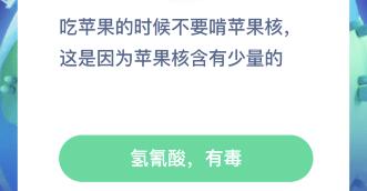 吃苹果的时候不要啃苹果核,这是因为苹果核含有少量的-12月11日蚂蚁庄园答案