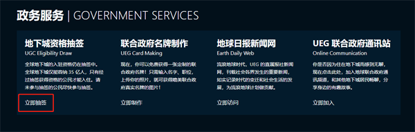 1、在浏览器打开地球联合政府官网https://uegov.world/地址,打开进入该网站来抽签获得地下城居住资格;